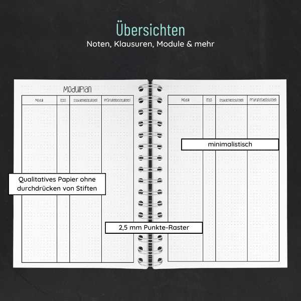 Der vollständig IU optimierte Studienplaner A5 für dein gesamtes Bachelorstudium in der Original Schriftart.